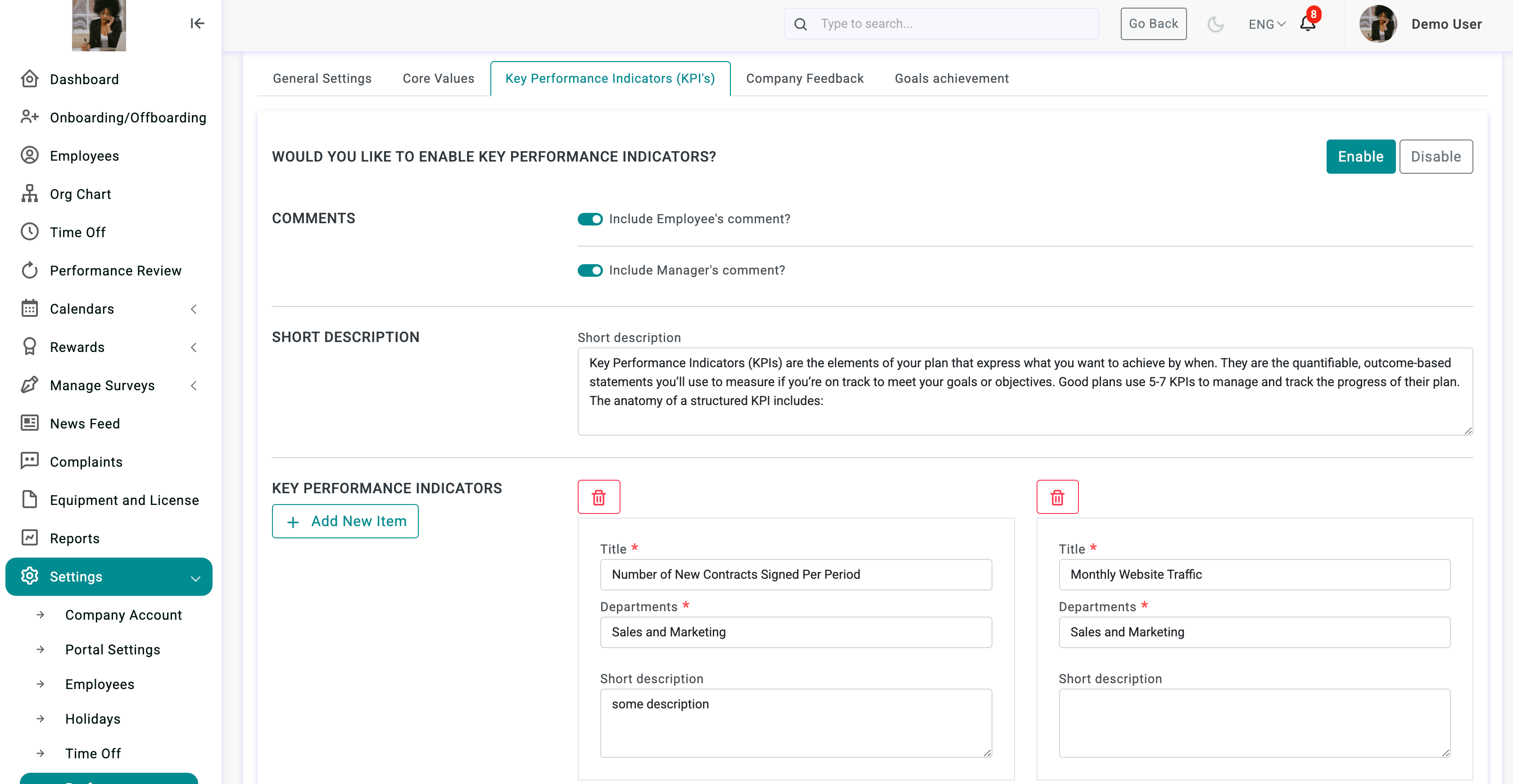Short Descriptions: add an information for your employees to explain them what is the purpose of this section.